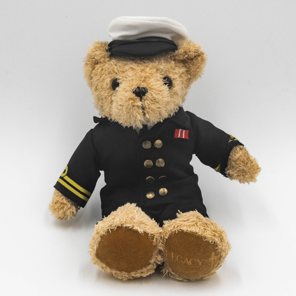 Plush Legacy Bear wearing male Naval Officer uniform. Dimensions: Approx 25cm (H)